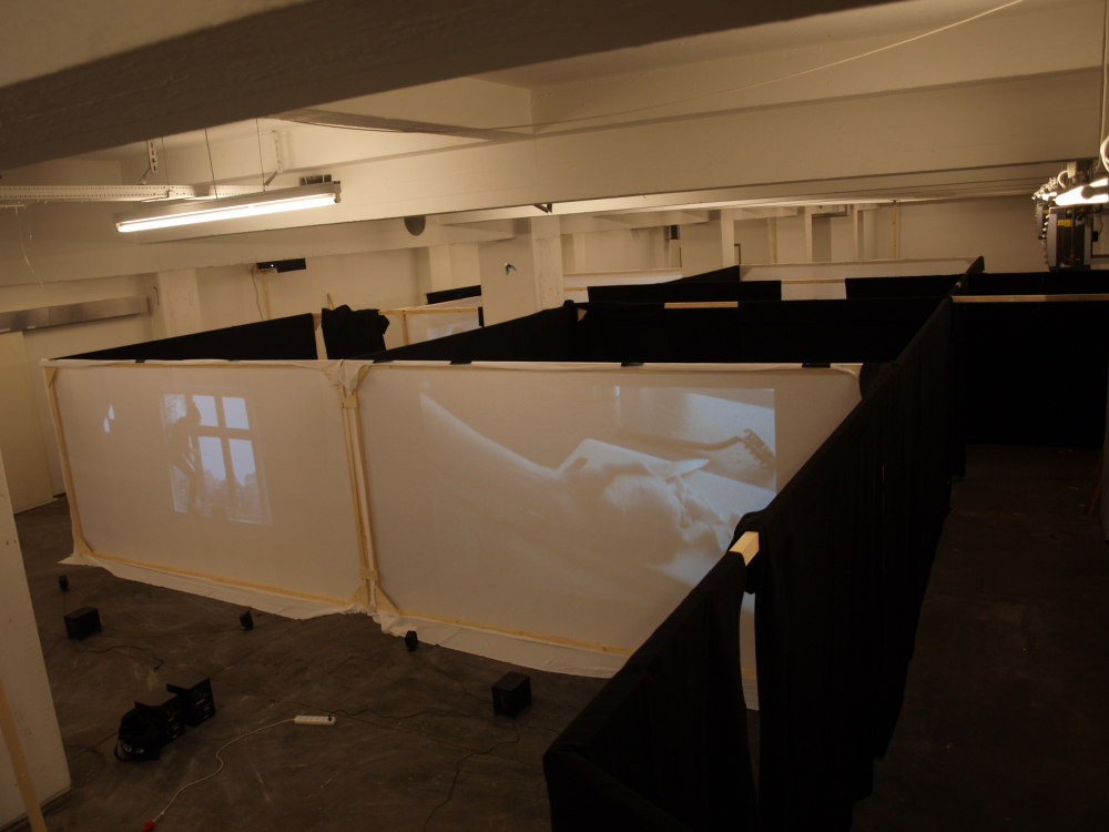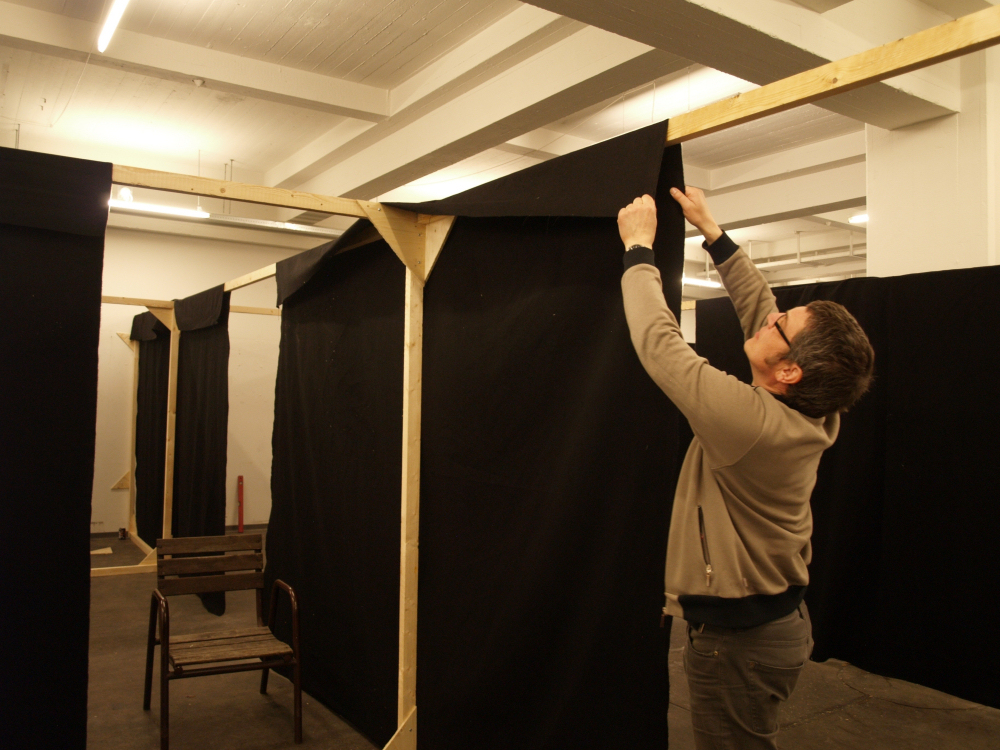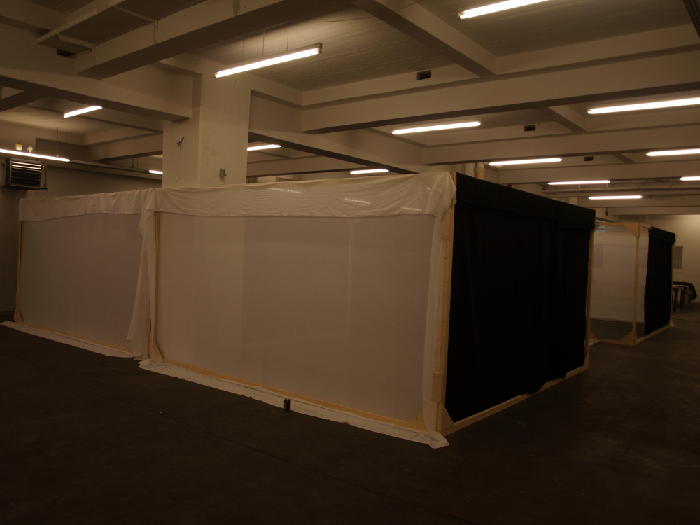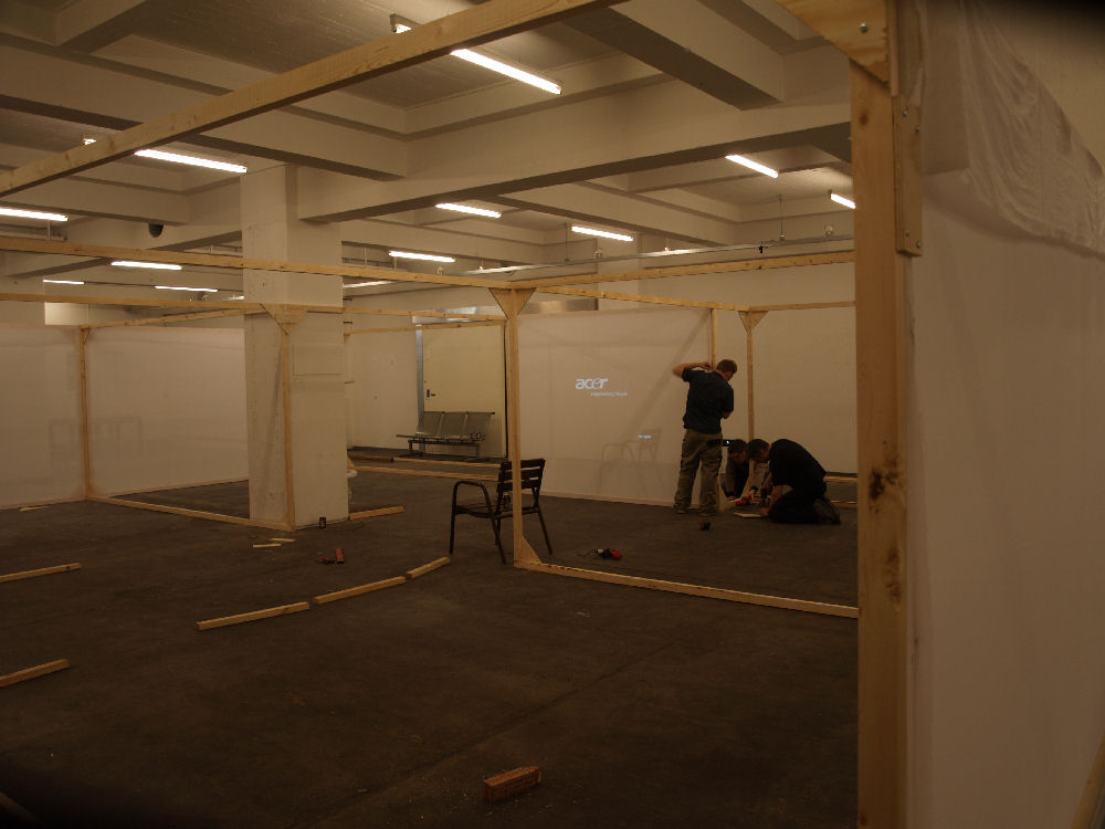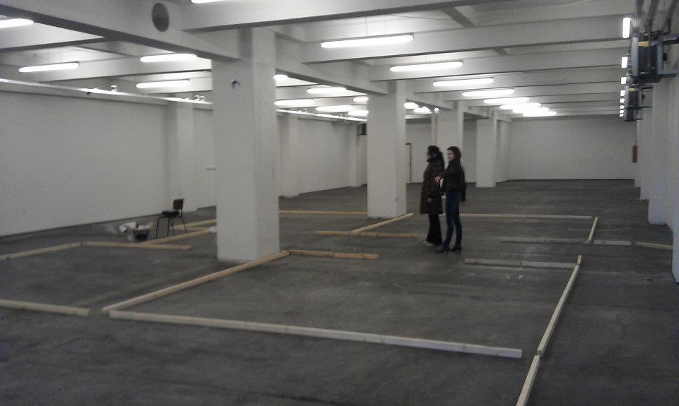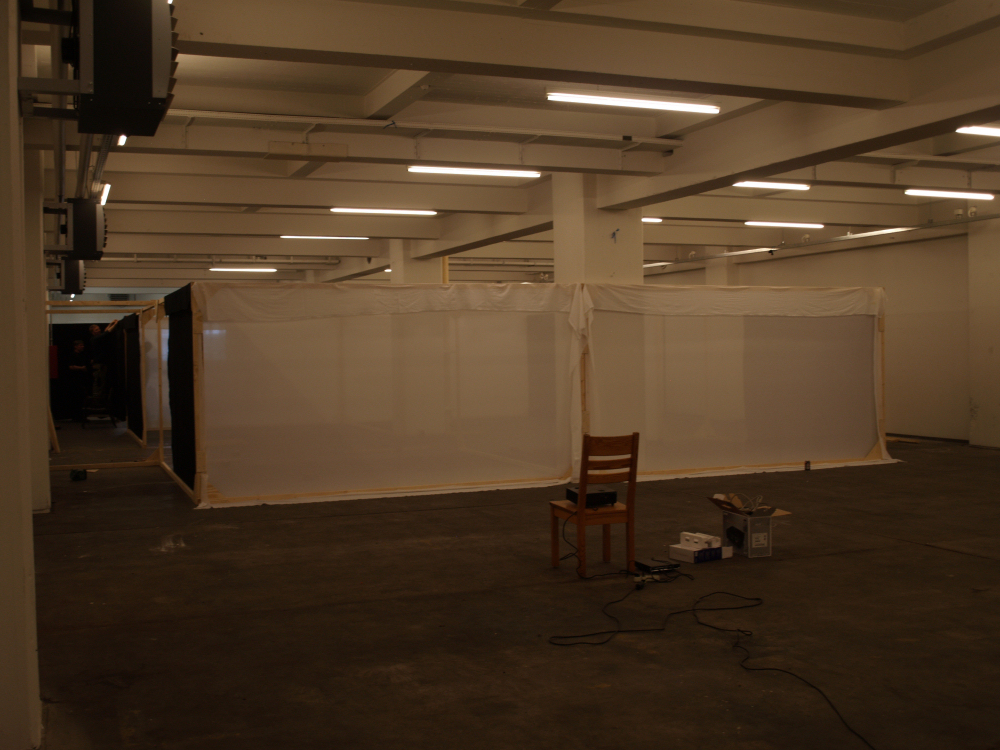 Billeder fra opsætning af installationen, taget på Ny Tap, Carlsberg, København, 2012.